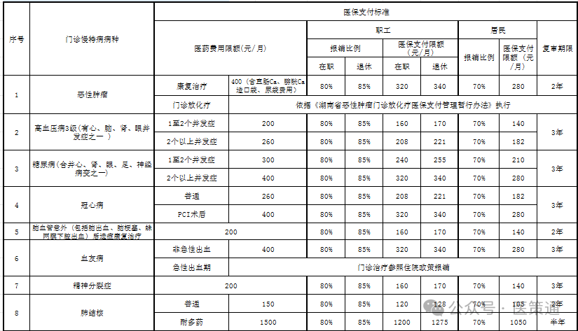 三、门诊慢特病病种范围和医保支付标准
