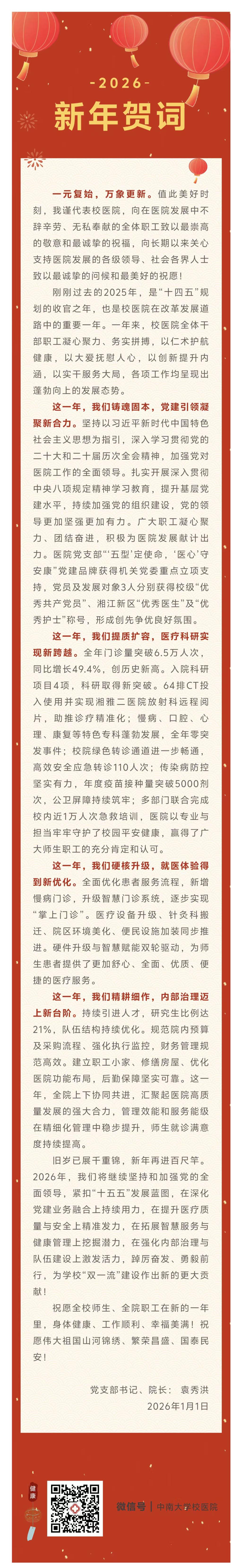 中南大学校医院2026年新年贺词
