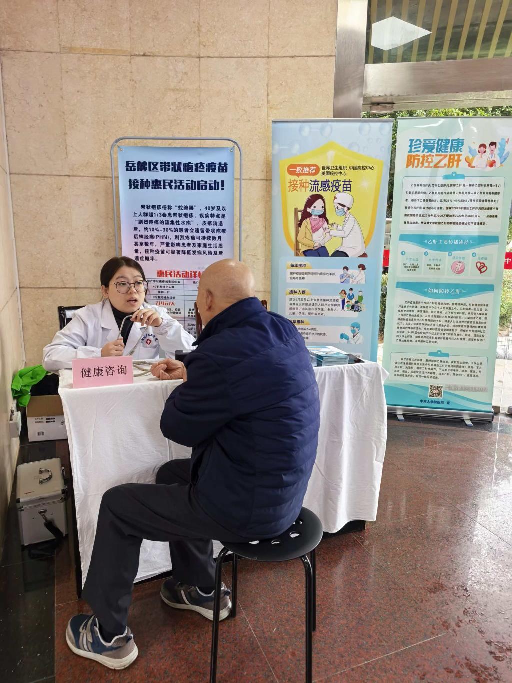 为深入践行“以师生健康为中心”的服务宗旨,将学校对离退休老同志的关怀落到实处,2025年11月至2026年1月期间,校医院与离退休工作处密切协作,分两阶段在岳麓山校区老年活动中心设立了健康咨询服务站,将专业的医疗健康服务送到老同志身边。