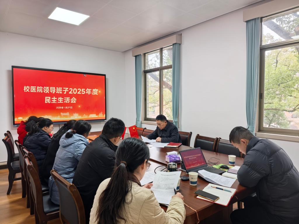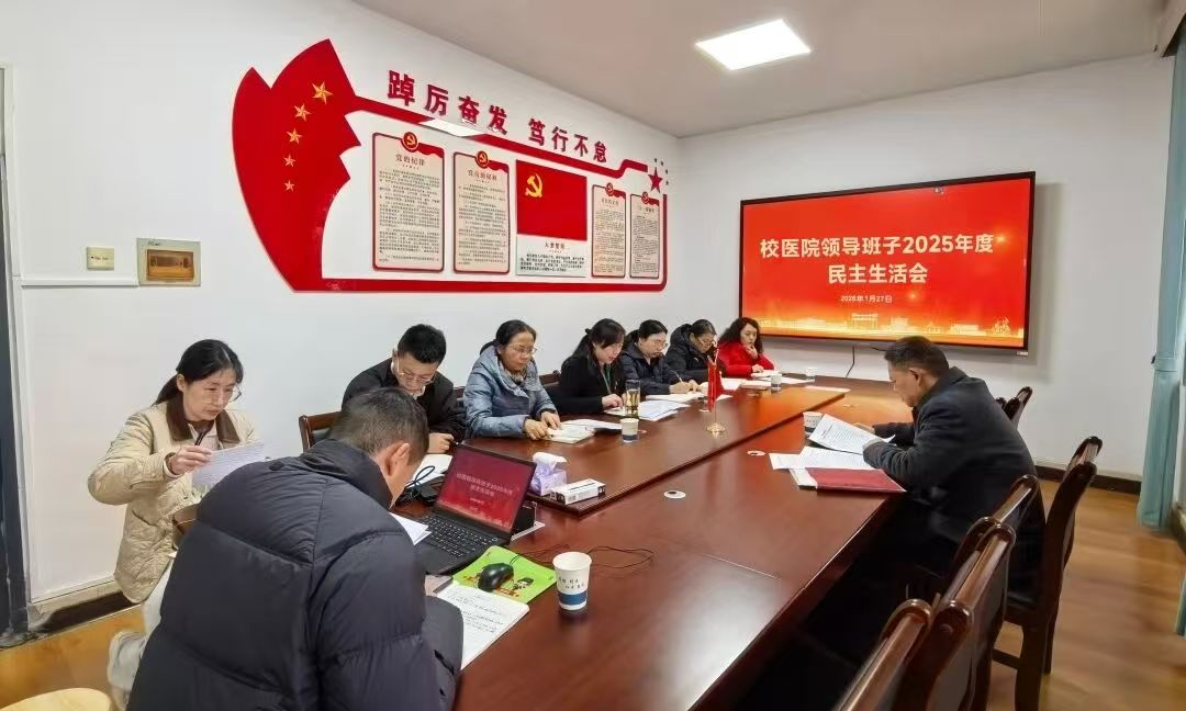 1月27日下午,校医院领导班子召开2025年度民主生活会,围绕本年度民主生活会主题,紧密联系思想和工作实际进行问题剖析,严肃开展批评和自我批评,明确下一步努力方向和改进措施。机关及直附属单位2025年度民主生活会督导组姬志洲同志到会指导。校医院领导班子成员、校医院党支部委员会全体委员参加会议。校医院党支部书记、院长袁秀洪主持会议。